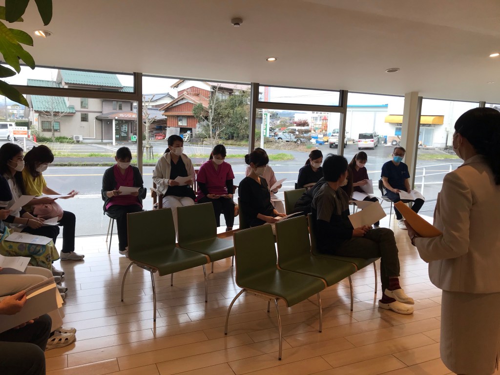 色々な対応策の提案があり、ロールプレイをしながら患者さんへ電話対応から受診から帰るまでの流れをお互いに確認をしました(来院前の検温やマスク持参のお願いなど)。明日から可能なことから実施していきたいと思います。安心医療を提供するために徹底的な感染対策を行いたいと思います。